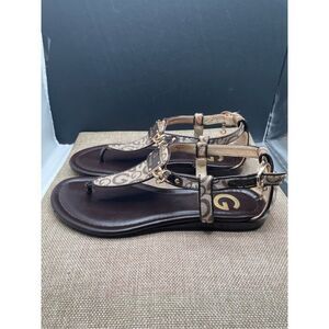 Guess Thong Ankle Strap Sandals With Buckle G Logo Pattern Bling Size 6 Women’s