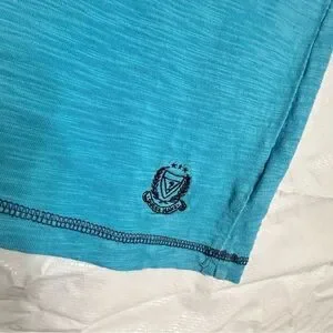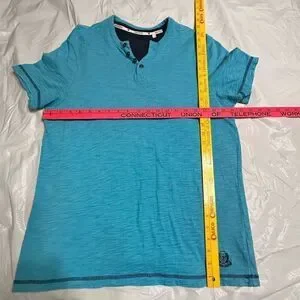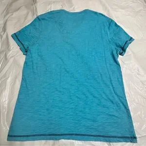 Guess Turquoise burn out Short Sleeve Henley T-shirt with blue inset at collar and contrasting stitching Size Large. In great condition