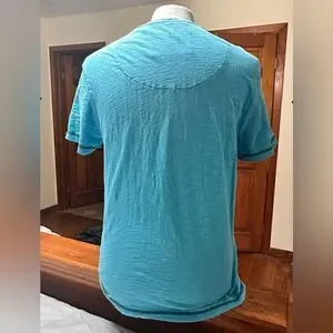 Guess Turquoise burn out Short Sleeve Henley T-shirt Size Large