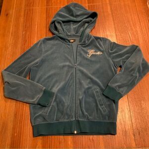 Guess Women’s Teal Blue Velour Hoodie Track Jacket L