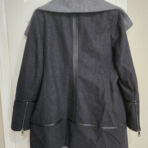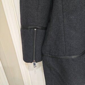 Guess-Y2K_ Black wool blend Leather Trim Zip Up winter peacoat_Large