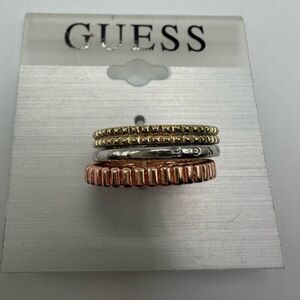 Set of 3 rings in gold tone, rose gold tone, and silver tone New on Guess card Size 6.5