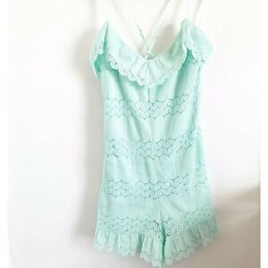 💥 Guess spaghetti strap Vita Ruffled Romper in Fair Aqua. Never worn .