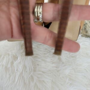 round toe tan platform pumps with wood tone heels. Preloved condition. All sections of interest as well any known flaws have been documented in the photos and noted as thoroughly as possible. if there are no known flaws, none will be noted. Please feel free to ask any questions before purchase đ. Please see photos for measurements shown.