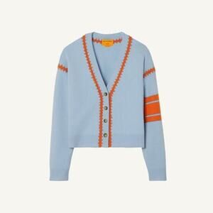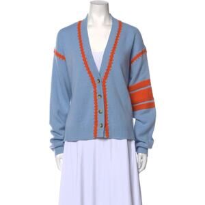 Featuring a V-neckline, long sleeves, a soft cashmere texture, a relaxed fit and front button closure. V-neck. Long sleeves. Embroidered accent. Material: 100% Cashmere. Fits true to size