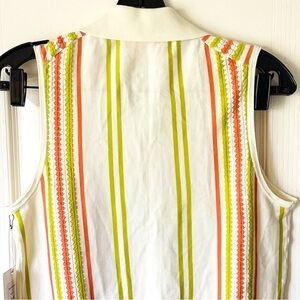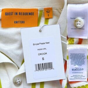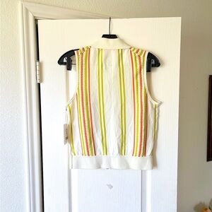 Guest In Residence Stripe Plaza Vest Cotton Knit Cream Citron Orange Small NWT