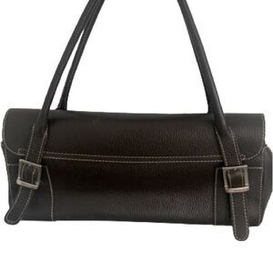 TAGS: guias leather bag, italian shoulder bag, black everyday purse, triple buckle handbag, medium leather tote, italian-made bag, simple leather purse, soft leather bag