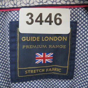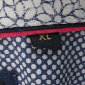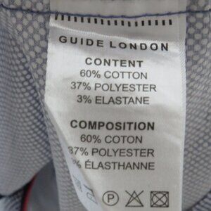 Pre-Owned Condition! 60% Cotton/37% Polyester/3% Elastane. Handsome Stretch Fabric Blue & White Small Polka Dot Button Down Collar Shirt with Matching Buttons(spares attached). Faded Line on Collar.