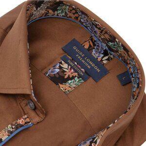 Guide London Tan with Floral Print Contrast Dress Long Sleeve Shirt