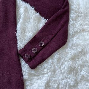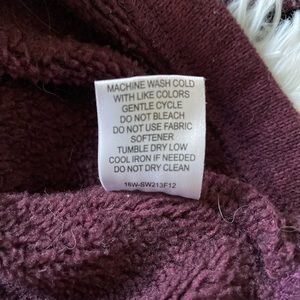 Guide Series from Gander Mountain Women’s long sleeve sweater is very warm and rarely worn. It is a maroon color and slightly fitted.