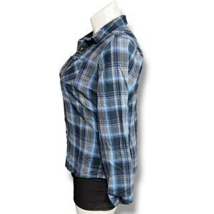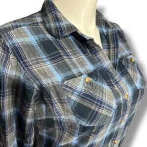 Guide Series Womens Plaid Flannel Shirt Top Collared Button Down Blue Large