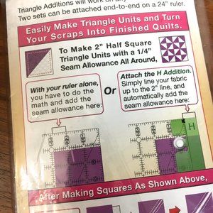 Simply line up to the finished size you want and the precise seam allowance for Half or Quarter Square Triangles is automatically added when you cut
