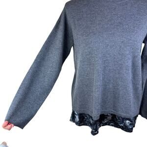 Guido Lombardi Gray Merino Wool Knit Silk Satin Flyaway Back Twofer Sweater