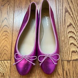 Metallic magenta ballet flats from Anthropologie in a size 6 with bow detail. Never worn outshine or for more than a couple try ons. Super cute for fall!