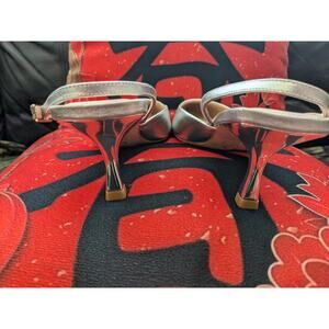 Guilhermina Sz 6 Silver Genuine Leather Spool Heel Dress Formal Shoes Heels
