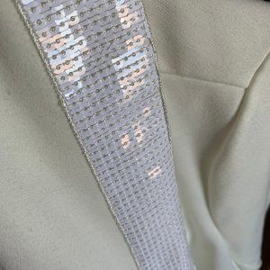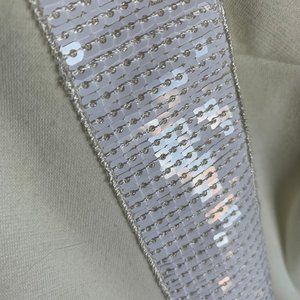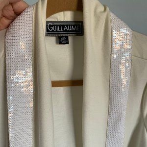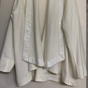 Guillaume Off-White Women's Waterfall Open Cardigan Flowy Sequin Collar, Size L