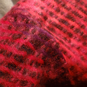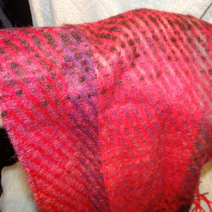 Guillaume de Mons Scarf. Plaid style with pinks, purples and coral colors. New with Tags. Measures:11"x64"(not counting fringes)