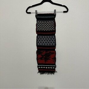 Guillaume de mons paris textured floral fringe wool blend scarf 7.5” X 48.5”