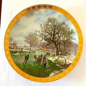 Guillen Porcelain Frozen River Ice-skating Vintage Plate