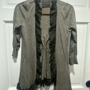 Guinevere ANTHROPOLOGIE Size S Cardigan Sweater Green Striped Ruffle Steampunk