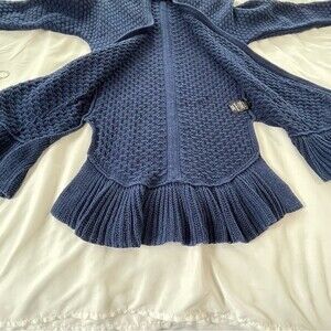 Guinevere Anthropologie Navy Blue Open Front Cardigan with High Side Slits Size Small