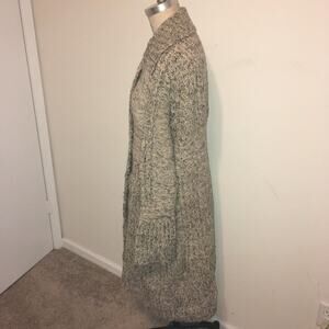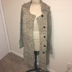 Guinevere Beige & Gray Wool & Cashmere Long Button Front Sweater L