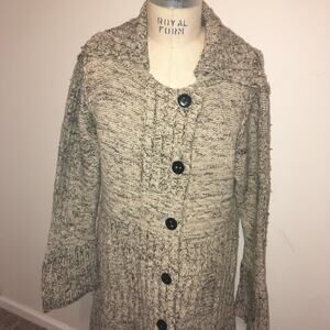 GUINEVERE BEIGE & GRAY WOOL & CASHMERE LONG BUTTON FRONT SWEATER L