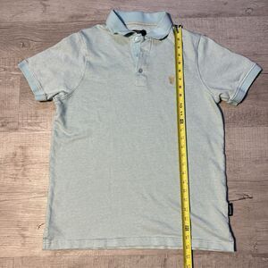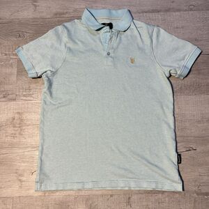 The Guinness Men's Polo Shirt in rugby style, size large, features a microcheck pattern in green color with short sleeves, collared neckline, and button closure. Made of breathable cotton knit fabric, this shirt is perfect for travel, activewear, and casual occasions during the summer, fall, and spring seasons. With a chest size of 19.5 inches and shirt length of 28 inches, this regular fit shirt is a great addition for men who enjoy beer and sports-themed clothing.