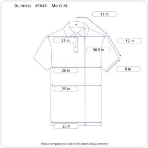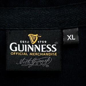 Men’s XL Guinness polo shirt, new with tags. Official merchandise in black cotton piqué with all-over appliqué logos: beer glass, harp patch, clover shield, and bold Guinness branding across chest, sleeve, and back. Clean construction with no flaws. Classic polo fit with standard XL dimensions. Solid piece for St. Patrick’s Day, brewery events, or bar wear rotation.