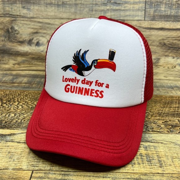 Guinness Toucan Beer Mens Trucker Hat Red Snapback Lovely Day 1950s Ad Ball Cap