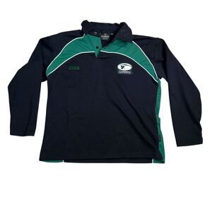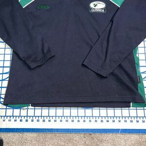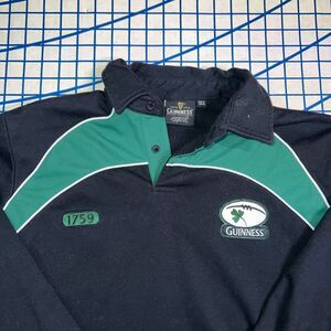 The Guinness Mens Size 12 1759 Rugby Polo Shirt is a classic and stylish black polo shirt made from cotton knit fabric. It features the official embroidered Guinness logo on the chest, making it a standout piece for any rugby enthusiast. \