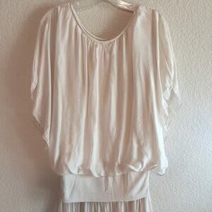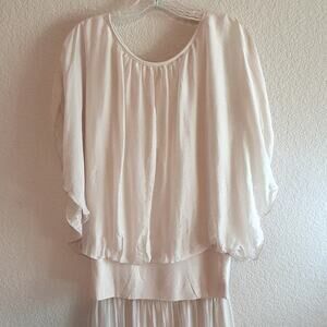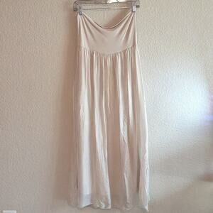 Guisy Made in Italy NEW Lined Sheer Silk Blend Tan Creme Skirt L & Top M 2PCSet
