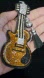 Guitar-shaped design fully covered in brown, gold, silver, and black rhinestones