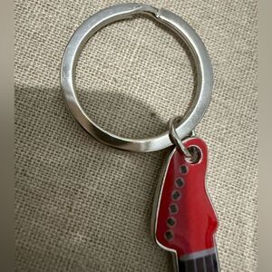 This guitar-shaped bottle opener keychain is the ultimate combo of cool and practical! Designed in a vibrant red and white enamel finish with black frets and silver edges, it’s shaped like an electric guitar with the body doubling as a sturdy metal bottle opener.