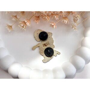 Silver toned & black enameled vintage double backed pin. The brooch has two pin enclosures with a black enamel front. Features a male seated with a guitar in hand. Awesome pin for someone who loves rock n roll or music in general. On the back it says "I got my way and you got yours."