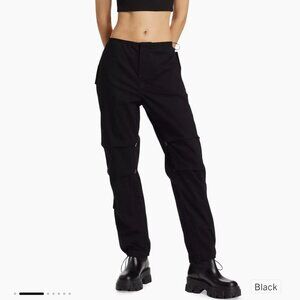 GUIZIO's Utility cargo pants showcase adjustable bungee cords at the waist and cuffs. Pleated at the knees, this piece features front flap pockets and back patch pockets with hidden snaps.