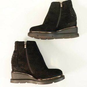 Womens Shoes Leather Size 36.5 Boots Black Pull On Wedge Platform Booties 6 Guja