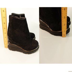 Womens Shoes Leather Size 36.5 Boots Black Pull On Wedge Platform Booties 6 Guja