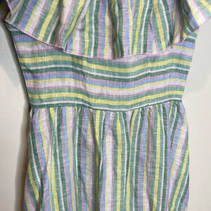 Gul Hurgel Pastel Multicolored Striped Linen Midi Dress XS