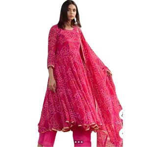 Gulabo Jaipur Womens Size XXL Georgette Bhandhani Naaz Pink Anarkali Kurta Dress