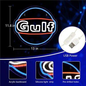 Gulf Neon LED Light Sign Garage Shop Decor Bar Man Cave Wall Oil Lube Mechanix