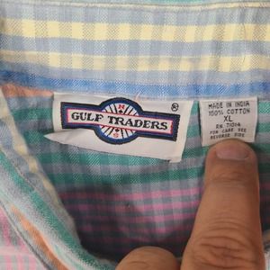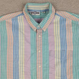 Gulf Traders Shirt Men's XL Colorful Short Sleeve Button Up Plaid Pocket Casual