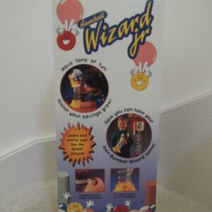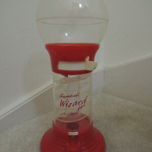 Perfect for gift-giving. Was a gift, never opened or used, taken out for photography only. Classic 12" tall, spiral gumball bank, tabletop gum ball machine in red color. GUMBALLS ARE NOT INCLUDED. Now you can have your own Wizard at home. Stored in a cool dry place. Comes from a smoke-free/pet-free home.