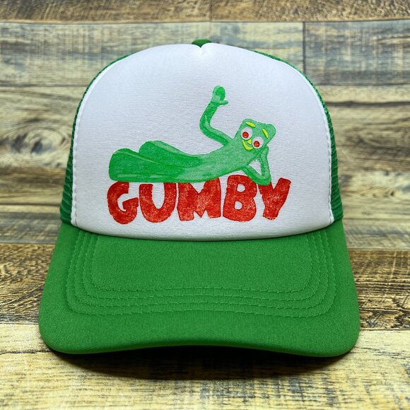 Gumby Mens Trucker Hat Green Snapback 1950s Clay Cartoon Throwback Baseball Cap