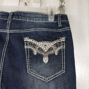 Gumm jeans dark wash straight leg denim jeans embellished pockets juniors size 13-14