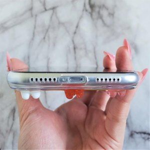 Has holographic dot pattern around the gummy bears as seen in photos to provide even more pop to this case. It is also transparent so you can show off your phones color as well