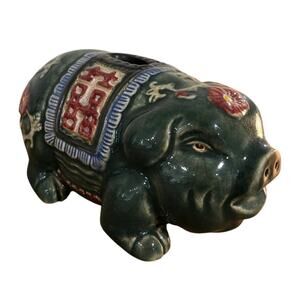 Gump’s Ceramic Piggy Bank Green Celadon Double Happiness Asian Decor