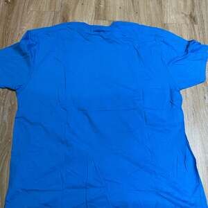 This "Gun Lover" t-shirt features a humorous graphic of a rifle with the text, "IT'S NOT A GUN IT IDENTIFIES AS A WIRELESS HOLE PUNCH." Perfect for those who appreciate witty pro-gun humor. Made from comfortable, breathable fabric in a vibrant blue color. This tee is a great statement piece and conversation starter. Excellent pre-owned condition, with no visible stains or holes.