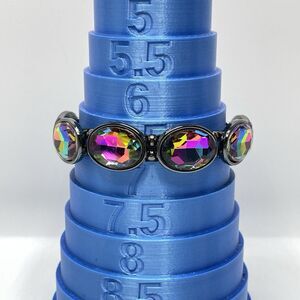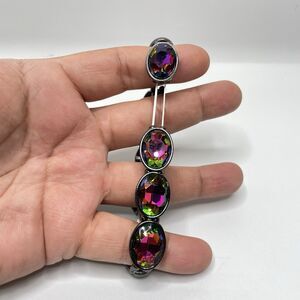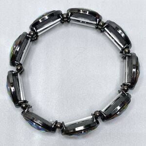 Gun Metal Black AB Glass Oval Cut Stretch Bracelet Gothic Statement 6.5"