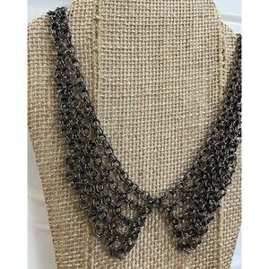 Gun Metal Peter Pan Collar Chain Link Necklace Set Whimsigoth Fairy Grunge